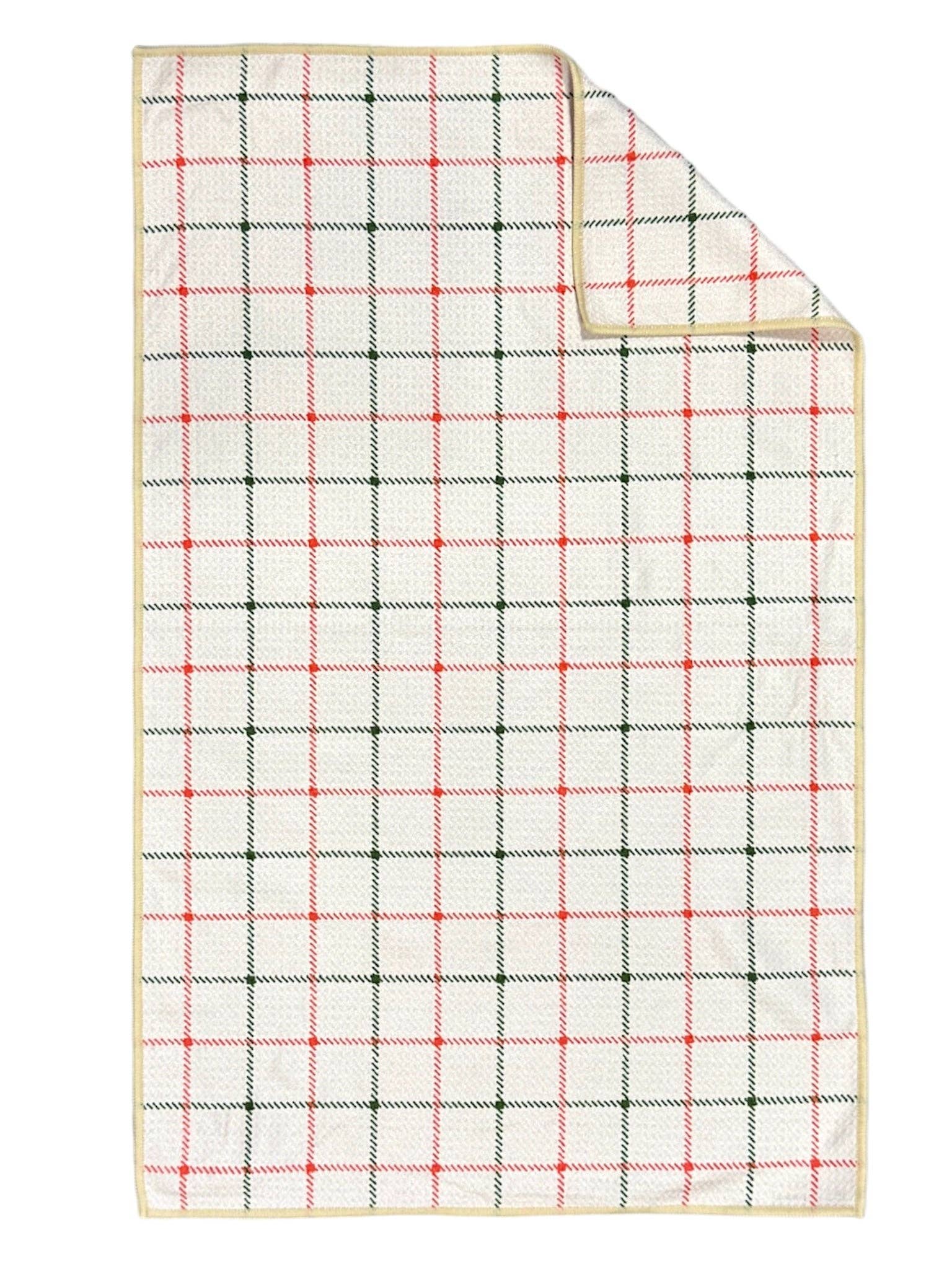 Have a little frill to wipe up a spill. With an easy touch of magic to functionally add a little holiday cheer to your home. A high-absorbent waffle weave microfiber Hand Towel Double-Sided (The same pattern on each side) 17 inches x 27 inches Only wash with microfiber products. Machine wash and dry with low heat. Environmentally friendly